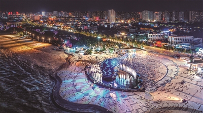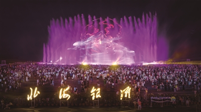 晚8时多,音乐喷泉灯光秀序曲响起。“潮”雕的巨型镂空球体亮起神秘的光芒,珠体上的波纹熠熠生辉,像潮水涌动,拥抱南珠迎潮远航;戴着珍珠项链的七位采珠姑娘手持麦穗,手挽手精心守护着南珠。此刻,喷泉打响一朵朵殷红的礼炮花,薄如轻纱的水幕上反复亮出“北海欢迎您”的字样。广场上掌声雷动,欢呼呐喊声惊天动地。