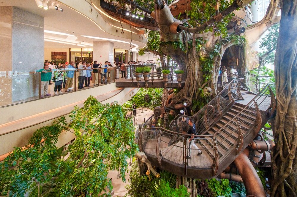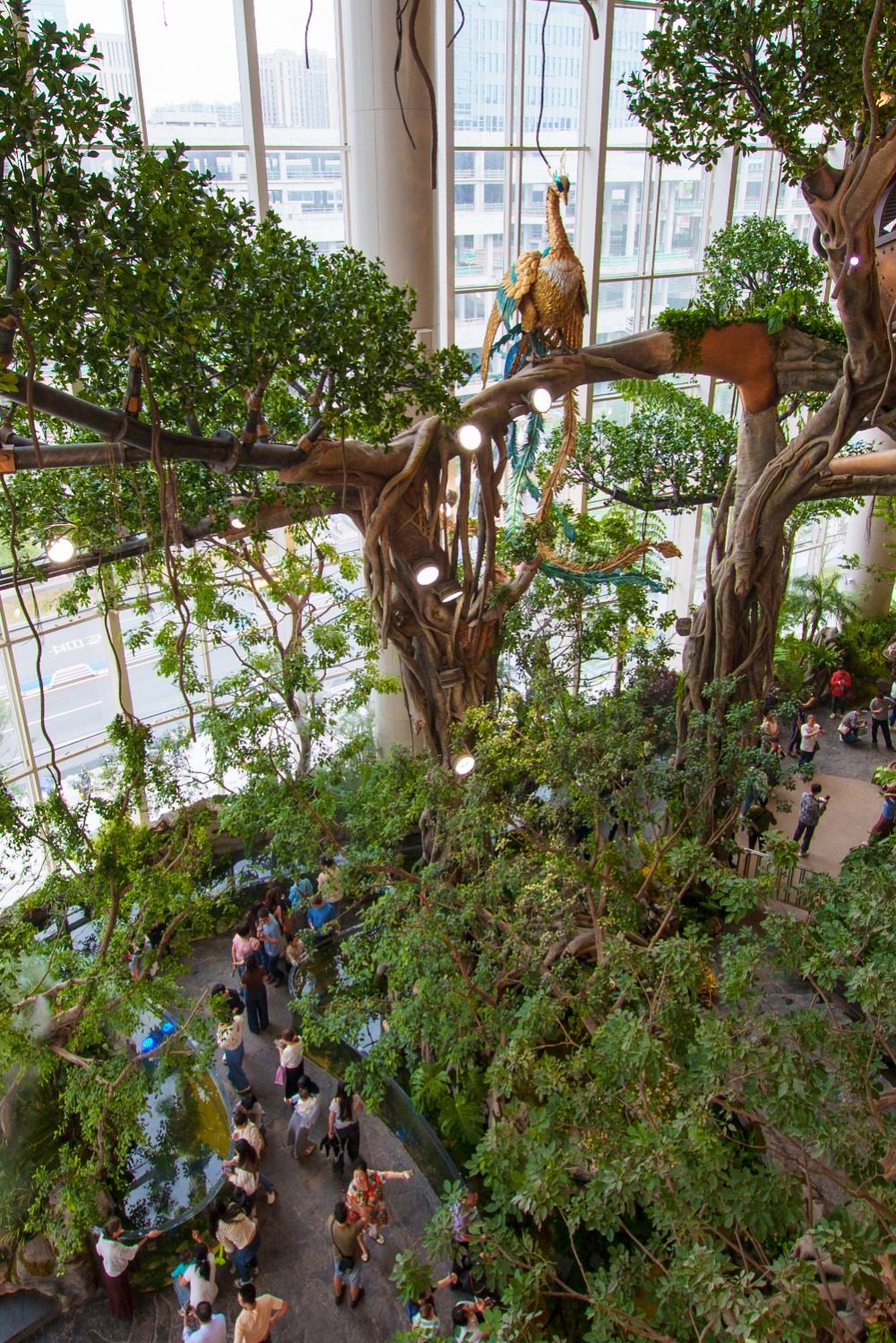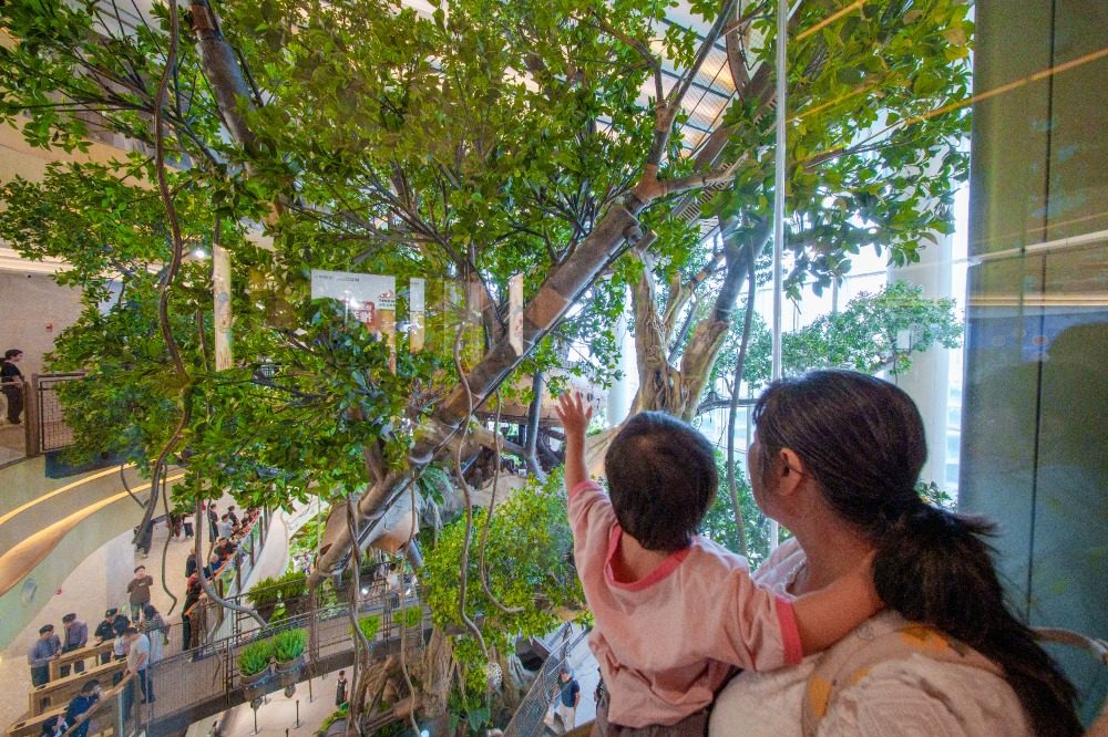 ▲9月26日,渝北区中央公园一商场,纵跨四层的森林景观吸引市民游客打卡拍照。记者 李雨恒 摄