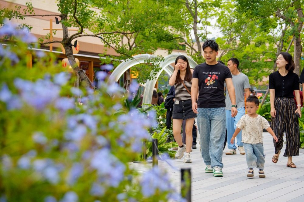 ▲9月26日,渝北区中央公园一商场,市民在休闲散步。记者 李雨恒 摄